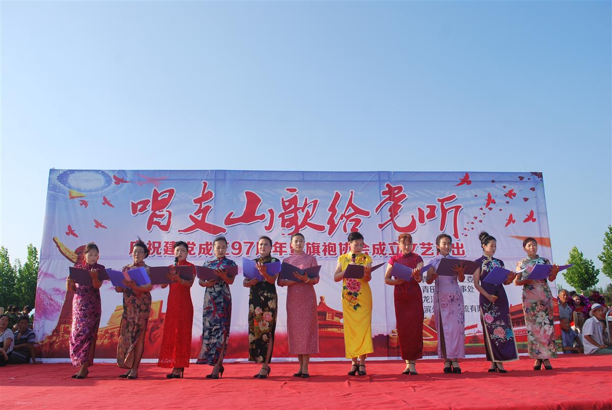 为热烈庆祝中国共产党成立 97周年,展示高新区街道和辖区群众奋发有为、昂扬向上的精神风貌,凝聚民心、鼓舞干劲,推动当前各项工作更好开展,6月30日,高新区青田街道党工委在蒲河风景区举办了“唱支山歌给党听”庆祝建党97周年暨旗袍协会成立的文艺汇演活动,共约800多名党员群众参与活动。高新区党群工作部副部长张滨、社会事务局局长宋胜利、青田街道办事处主任王锋、青田街道党工委副书记张长永等负责同志到场与辖区群众共同庆祝党的生日。